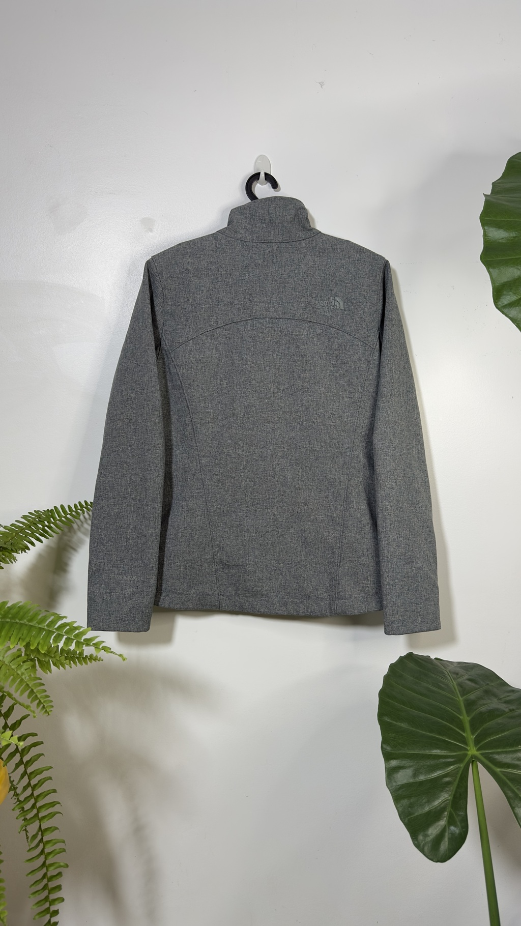Jaqueta chumbo aveludada internamente com Windywall full zipper com zipper nos bolsos da marca The North Face na cor chumbo.